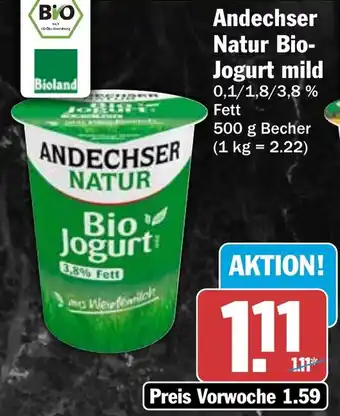 Jetzt im Angebot bei HIT: Andechser Natur Bio- Jogurt mild ✅ Aktion gültig vom 20-04 bis 25-04.