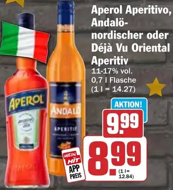 Jetzt im Angebot bei HIT: Aperol Aperitivo, Andalönordischer oder Déjà Vu Oriental Aperitiv ✅ Aktion gültig vom 22-12 bis 27-12.