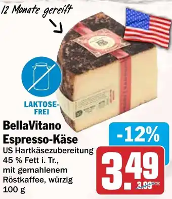 Jetzt im Angebot bei HIT: Bella Vitano Espresso-Käse ✅ Aktion gültig vom 9-03 bis 14-03.