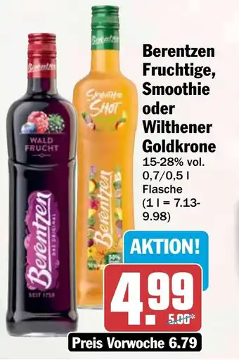 Berentzen Fruchtige, Smoothie oder Wilthener Goldkrone-Angebot bei HIT