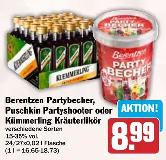 Berentzen Partybecher, Puschkin Partyshooter oder Kümmerling Kräuterlikör-Angebot bei HIT