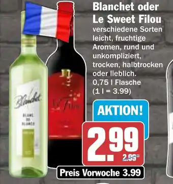 Abgesehen von Blanchet oder Le Sweet Filou, bietet HIT eine Menge anderer Artikel an. Behalten Sie den wöchentlichen HIT Prospekt im Blick, um die besten Angebote und Aktionen nicht zu verpassen. Abgesehen von Blanchet oder Le Sweet Filou können Sie weitere, interessante Angebote entdecken: Blanchet oder Le Sweet Filou, LE SWEET FILOU Vin de France & Blanchet Weine.