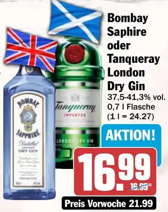 Bombay Saphire oder Tanqueray London Dry Gin 0.7 l