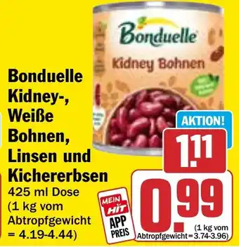 Jetzt im Angebot bei HIT: Bonduelle Kidney-, Weiße Bohnen, Linsen und Kichererbsen ✅ Aktion gültig vom 12-01 bis 17-01.