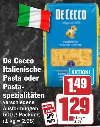 De Cecco Italienische Pasta oder Pasta- spezialitaten Aktion bei HIT