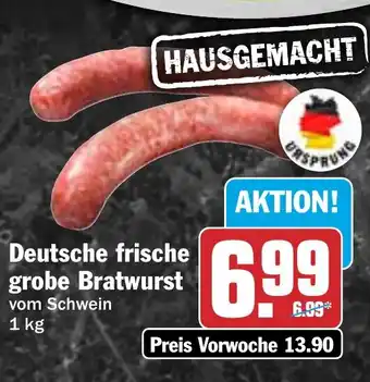 Jetzt im Angebot bei HIT: Deutsche frische grobe Bratwurst ✅ Aktion gültig vom 29-12 bis 3-01.