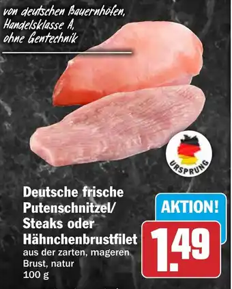 Deutsche frische Putenschnitzel/ Steaks oder Hähnchenbrustfilet-Rabatt bei HIT