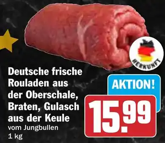 Jetzt im Angebot bei HIT: Deutsche frische Rouladen aus der Oberschale, Braten, Gulasch aus der Keule ✅ Aktion gültig vom 15-12 bis 20-12.
