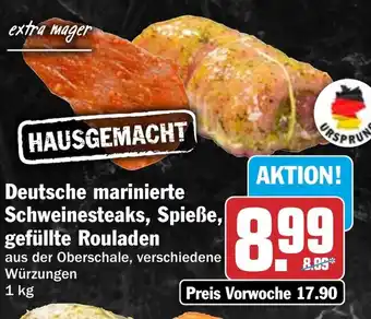 Deutsche marinierte Schweinesteaks, Spieße, gefüllte Rouladen Angebote und Online Aktionen direkt aus dem aktuellen HIT Angebot