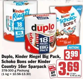 Duplo, Kinder Riegel Big Pack, Schoko Bons oder Kinder Country 16er Sparpack-Rabatt bei HIT