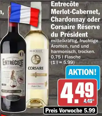 Entrecôte Merlot-Cabernet, Chardonnay oder Corsaire Réserve du Président Angebote und Online Aktionen direkt aus dem aktuellen HIT Angebot