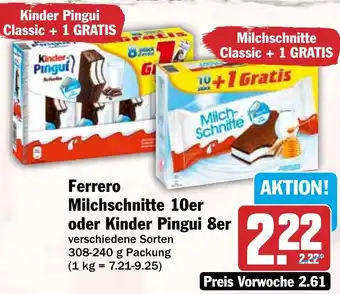 Ferrero Milchschnitte 10er oder Kinder Pingui 8er Angebote und Online Aktionen direkt aus dem aktuellen HIT Angebot