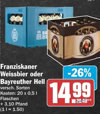 Franziskaner Weissbier oder Bayreuther Hell-Rabatt bei HIT