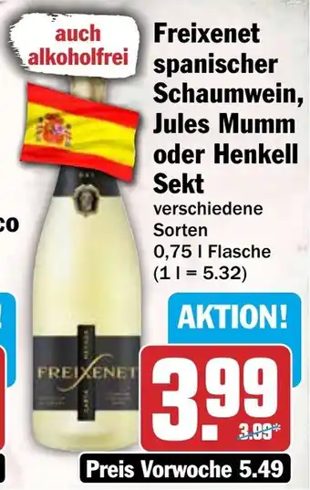 Freixenet spanischer Schaumwein, Jules Mumm oder Henkell Sekt Angebote und Aktionen bei HIT