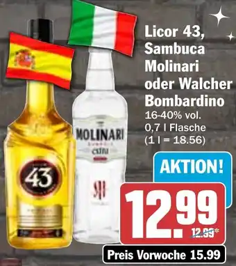 Licor 43, Sambuca Molinari oder Walcher Bombardino Angebote und Aktionen bei HIT
