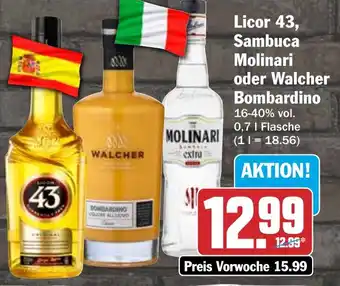 Jetzt im Angebot bei HIT: Licor 43, Sambuca Molinari oder Walcher Bombardino ✅ Aktion gültig vom 9-02 bis 14-02.