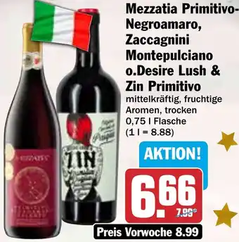 Mezzatia Primitivo Negroamaro, Zaccagnini Montepulciano o.Desire Lush & Zin Primitivo-Rabatt bei HIT