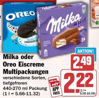 Milka oder Oreo Eiscreme Multipackungen-Rabatt bei HIT
