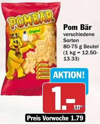 Pom Bär ist jetzt im Angebot bei HIT, gültig vom 19-01-2026 bis 24-01-2026. Besuchen Sie die Website von HIT oder kaufen Sie Pom Bär direkt im Geschäft. Auf Prospektangebote.de finden Sie immer die besten aktuellen Aktionen. Vergleichen Sie Pom Bär mit anderen Angeboten und prüfen Sie, ob sich ein Kauf jetzt lohnt. Behalten Sie kommende Aktionen im Blick, denn manche Produkte sind nur nächste Woche oder nur vor Ort verfügbar.Häufig gestellte Fragen über Pom Bär