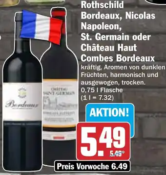 Jetzt im Angebot bei HIT: Rothschild Bordeaux, Nicolas Napoleon, St. Germain oder Château Haut Combes Bordeaux ✅ Aktion gültig vom 19-01 bis 24-01.