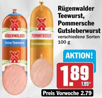 Rügenwalder Teewurst, Pommersche Gutsleberwurst Angebote und Aktionen bei HIT