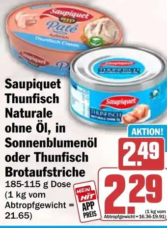 Jetzt im Angebot bei HIT: Saupiquet Thunfisch Naturale ohne Öl, in Sonnenblumenöl oder Thunfisch Brotaufstrich ✅ Aktion gültig vom 2-02 bis 7-02.