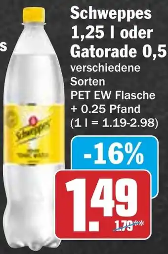 Schweppes oder Gatorade 1.25-0.5 l