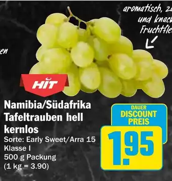 Abgesehen von Tafeltrauben hell kernlos, bietet HIT eine Menge anderer Artikel an. Behalten Sie den wöchentlichen HIT Prospekt im Blick, um die besten Angebote und Aktionen nicht zu verpassen. Abgesehen von Tafeltrauben hell kernlos können Sie weitere, interessante Angebote entdecken: Namibia/Südafrika Tafeltrauben hell kernlos, Gut & günstig tafeltrauben rot kernlos & Mandarinen, kernlos.