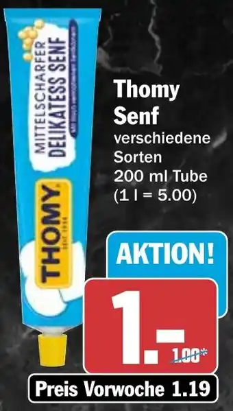 Das Angebot ist in verschiedenen Geschäften erhältlich. Schauen Sie sich alle Produkte an, um das günstigste Thomy Senf zu ergattern. Wenn Sie gerne nachschauen möchten, ob der Artikel woanders noch günstiger ist, werfen Sie einen Blick auf die Kategorie 'Supermärkte'. Möglicherweise sind diese Angebote auch interessant für Sie: Thomy Senf, THOMY DELIKATESS SENF & Thomy Delikatess Senf.