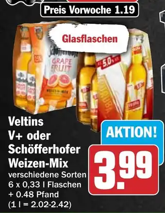 Veltins V+ oder Schöfferhofer Weizen-Mix-Angebot bei HIT