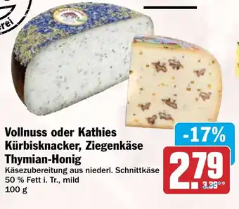 Vollnuss oder Kathies Kürbisknacker, Ziegenkäse Thymian-Honig-Rabatt bei HIT