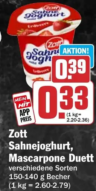 Zott Sahnejoghurt, Mascarpone Duett-Angebot bei HIT