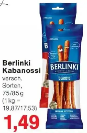 Das Angebot ist in verschiedenen Geschäften erhältlich. Schauen Sie sich alle Produkte an, um das günstigste Berlinki Kabanossi zu ergattern. Wenn Sie gerne nachschauen möchten, ob der Artikel woanders noch günstiger ist, werfen Sie einen Blick auf die Kategorie 'Kaufhäuser'. Möglicherweise sind diese Angebote auch interessant für Sie: Snack it kabanossi oder kabanossi high protein, K-CLASSIC Snack Salami oder Mini Kabanossi & K-CLASSIC Snack-Salami oder Mini-Kabanossi.