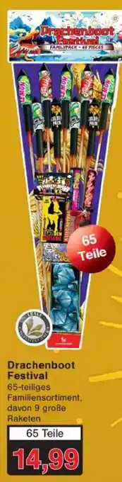 Abgesehen von Drachenboot Festival, bietet Jawoll eine Menge anderer Artikel an. Behalten Sie den wöchentlichen Jawoll Prospekt im Blick, um die besten Angebote und Aktionen nicht zu verpassen. Abgesehen von Drachenboot Festival können Sie weitere, interessante Angebote entdecken: Drachenboot Festival, Full Metal Festival Mayrhofen & Pyroland Raketensortiment TipTap Tube Family Festival.