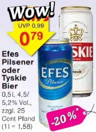 Efes Pilsener oder Tyskie Bier Angebote und Aktionen bei Jawoll
