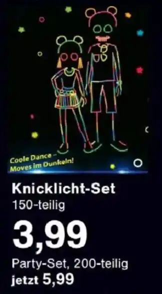 Knicklicht-Set 150-teilig ist jetzt im Angebot bei Jawoll, gültig vom 22-12-2025 bis 27-12-2025. Besuchen Sie die Website von Jawoll oder kaufen Sie Knicklicht-Set 150-teilig direkt im Geschäft. Auf Prospektangebote.de finden Sie immer die besten aktuellen Aktionen. Vergleichen Sie Knicklicht-Set 150-teilig mit anderen Angeboten und prüfen Sie, ob sich ein Kauf jetzt lohnt. Behalten Sie kommende Aktionen im Blick, denn manche Produkte sind nur nächste Woche oder nur vor Ort verfügbar.Häufig gestellte Fragen über Knicklicht-Set 150-teilig