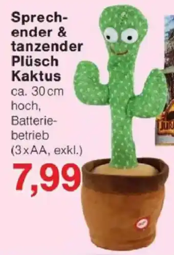 Den Preis von dem Sprechender & tanzender Plüsch Kaktus finden Sie auch oben auf der Website, zusammen mit dem Datum, ab wann das Angebot erhältlich ist. Sie können die Preise auch im aktuellen Jawoll Prospekt nachhalten oder auf der Jawoll Website nachschauen. Durch die Angebote können Sie sicher sein, die Jawoll Produkte zum absoluten Bestpreis zu ergattern.