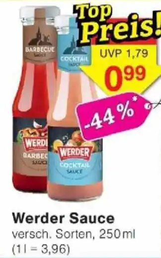 Abgesehen von Werder Sauce, bietet Jawoll eine Menge anderer Artikel an. Behalten Sie den wöchentlichen Jawoll Prospekt im Blick, um die besten Angebote und Aktionen nicht zu verpassen. Abgesehen von Werder Sauce können Sie weitere, interessante Angebote entdecken: Werder Sauce, Schluck- werder Marzipaneier & Werder Premium Tomaten Ketchup.