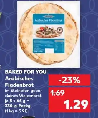 Abgesehen von Arabisches Fladenbrot, bietet Kaufland eine Menge anderer Artikel an. Behalten Sie den wöchentlichen Kaufland Prospekt im Blick, um die besten Angebote und Aktionen nicht zu verpassen. Abgesehen von Arabisches Fladenbrot können Sie weitere, interessante Angebote entdecken: Baked for you arabisches fladenbrot, Kaufland Bäckerei Fladenbrot & Frisches Balkan Fladenbrot.