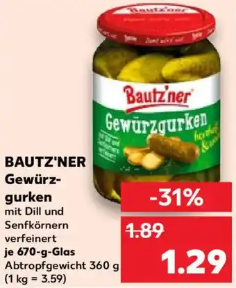 Jetzt im Angebot bei Kaufland: BAUTZ'NER Gewürzgurken ✅ Aktion gültig vom 2-01 bis 7-01.