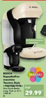 Jetzt im Angebot bei Kaufland: BOSCH Kapselkaffeemaschine Tassimo Style TAS112E/117E ✅ Aktion gültig vom 22-01 bis 28-01.