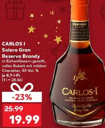 Jetzt im Angebot bei Kaufland: CARLOS I Solera Gran Reserva Brandy ✅ Aktion gültig vom 21-12 bis 24-12.