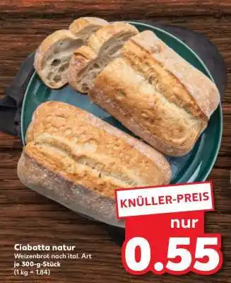 Jetzt im Angebot bei Kaufland: Ciabatta natur ✅ Aktion gültig vom 19-02 bis 25-02.