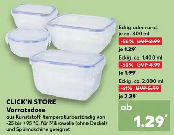 Jetzt im Angebot bei Kaufland: CLICK'N STORE Vorratsdose Eckig oder rund ✅ Aktion gültig vom 25-01 bis 28-01.