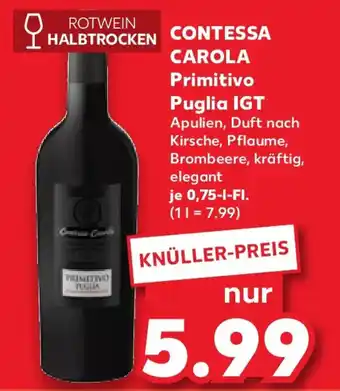 Jetzt im Angebot bei Kaufland: CONTESSA CAROLA Primitivo Puglia IGT ✅ Aktion gültig vom 25-01 bis 28-01.