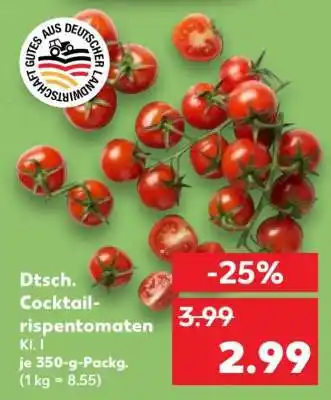 Jetzt im Angebot bei Kaufland: Dtsch. Cocktail rispentomaten ✅ Aktion gültig vom 8-01 bis 14-01.