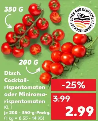 Jetzt im Angebot bei Kaufland: Dtsch. Cocktailrispentomaten oder Miniromarispentomaten ✅ Aktion gültig vom 22-01 bis 28-01.