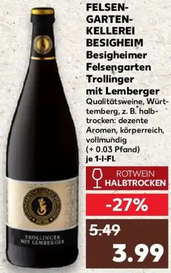 FELSENGARTENKELLEREI BESIGHEIM Besigheimer Felsengarten Trollinger mit Lemberger Aktion bei Kaufland