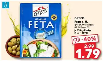 Jetzt im Angebot bei Kaufland: GRECO Feta g. U ✅ Aktion gültig vom 8-01 bis 14-01.
