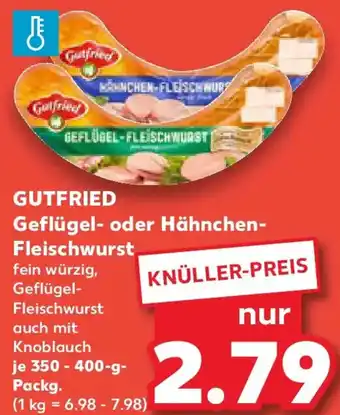 Jetzt im Angebot bei Kaufland: GUTFRIED Geflügel- oder Hähnchen Fleischwurst ✅ Aktion gültig vom 18-01 bis 21-01.